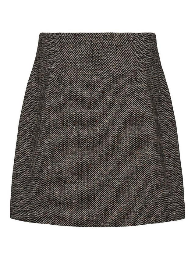 Юбка мини от Numph. Юбка выполнена в стиле А-силуэта, имеет высокую посадку и рисунок ёлочка. Застёгивается на пуговицы.