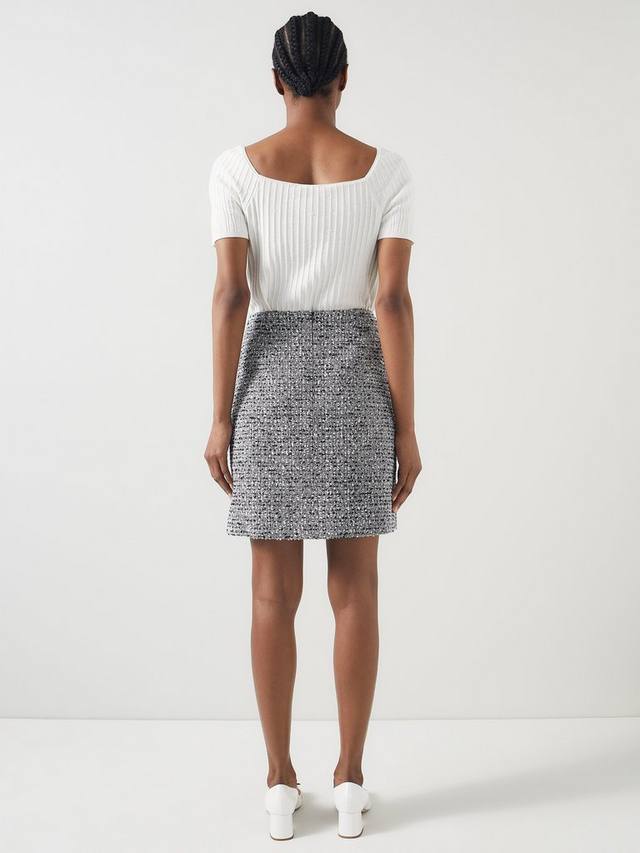 Эта изысканная юбка из твида с отделкой сочетает в себе роскошь и универсальность. Сшита из итальянского хлопкового твида с игривой бахромой и металлическими пуговицами с гербом. Она идеально подходит для элегантного офиса или неформального утренника.