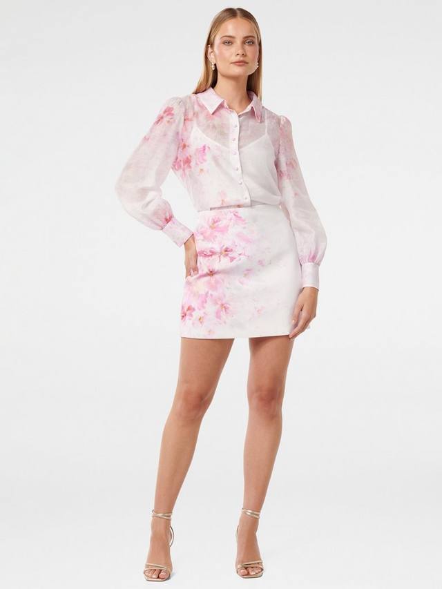 Эта мини-юбка от Forever New, вдохновленная чистым силуэтом, украшена цветочными узорами.