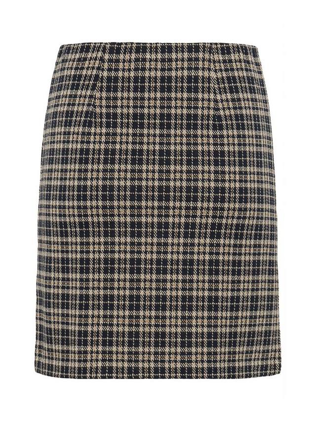 Эту юбку из второй части, идеально подогнанную под мини, можно надеть. Клетчатый принт, широкий эластичный пояс и застежка-молния.