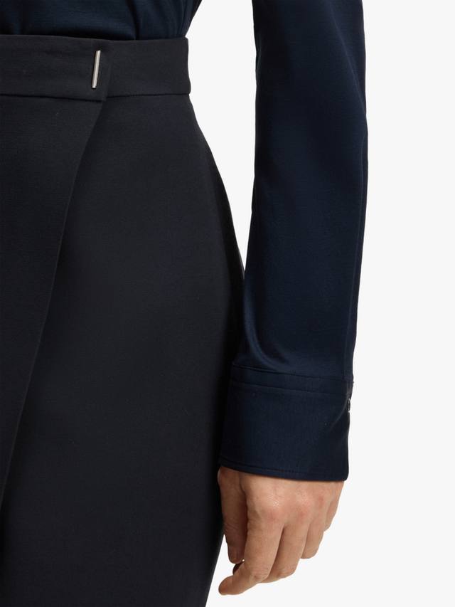 Эта мини-юбка от HUGO BOSS, воплощающая непринужденную женственность благодаря А-образному силуэту, — настоящее чудо рабочей одежды, к которому вы, несомненно, будете возвращаться снова и снова.