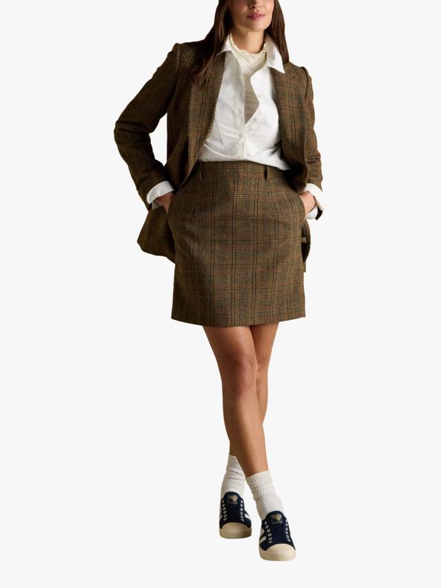 Войдите в осенне-зимнюю классику в этой мини-юбке из твида в клетку тартан. Она дополнена шлевками для ремня и застежкой-молнией сзади.