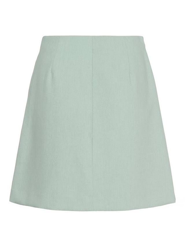 Юбка Corinne — простая и универсальная модель, которую можно носить с любым нарядом. Юбка с высокой талией и прямым поясом, застегивающимся на молнию по боковому шву. Юбка имеет крой до середины бедра, выгодно подчеркивающий фигуру А-силуэт и практичные боковые карманы.