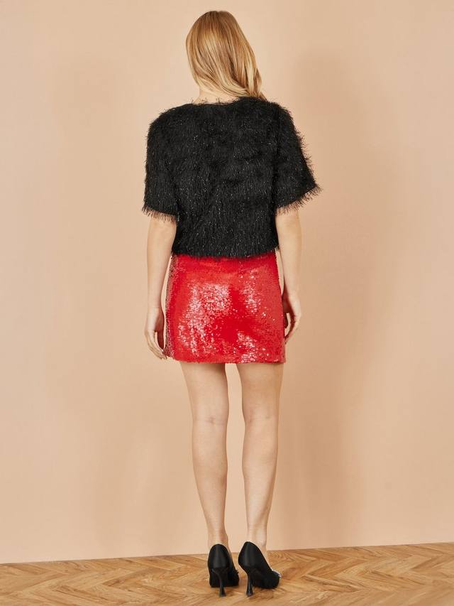 Выбирайте пайетки на любой случай. Будь то неформальная встреча или корпоративная вечеринка, эта мини-юбка станет вашим незаменимым помощником. Благодаря поясу на талии до середины бедра, сплошной отделке пайетками и разрезу на бедре, она прекрасно сочетается с повседневными джемперами, боди и блейзером.