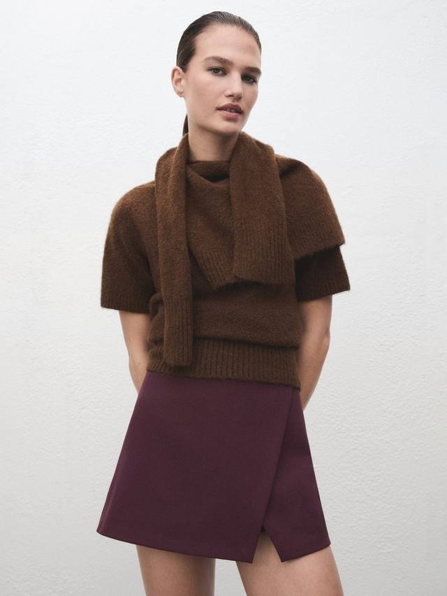 Эта юбка-шорты с запахом от Mango длиной мини застегивается на незаметную молнию сзади.