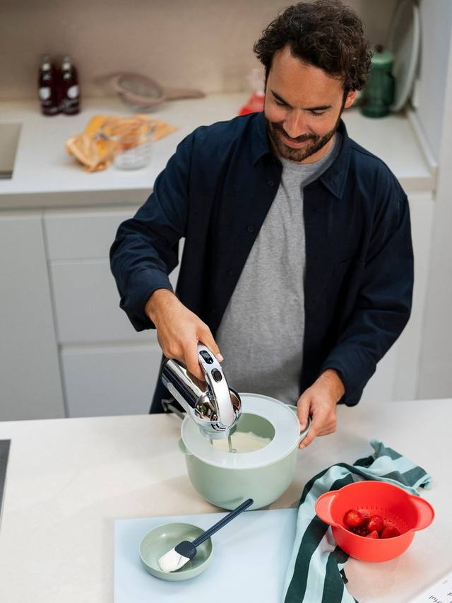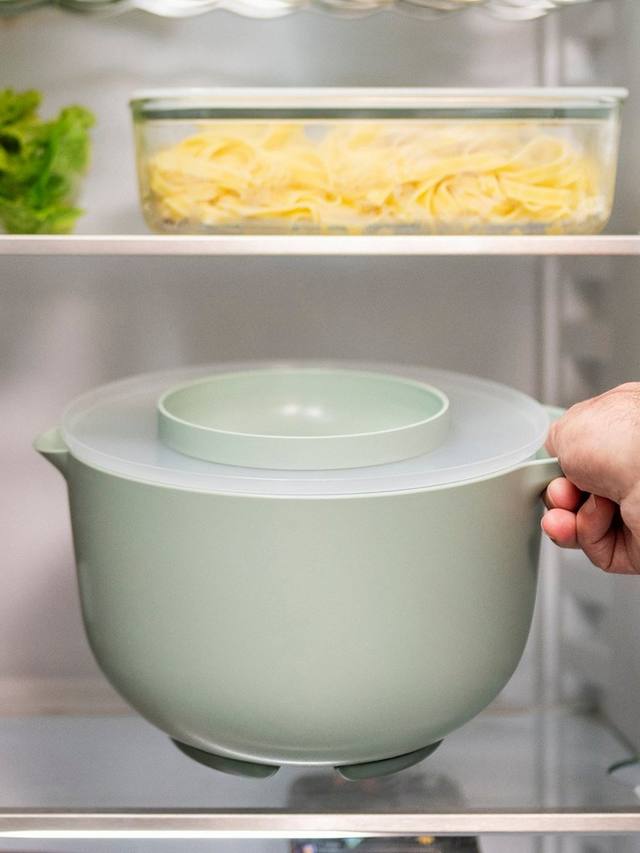 Миска для смешивания Mepal Chef It с крышкой сочетает в себе функциональность и элегантный современный дизайн. Благодаря прочному нескользящему кольцу миска остается устойчивой при смешивании, взбивании или замешивании. Благодаря отверстию в нескользящем кольце в ней не остается воды после мытья в посудомоечной машине.