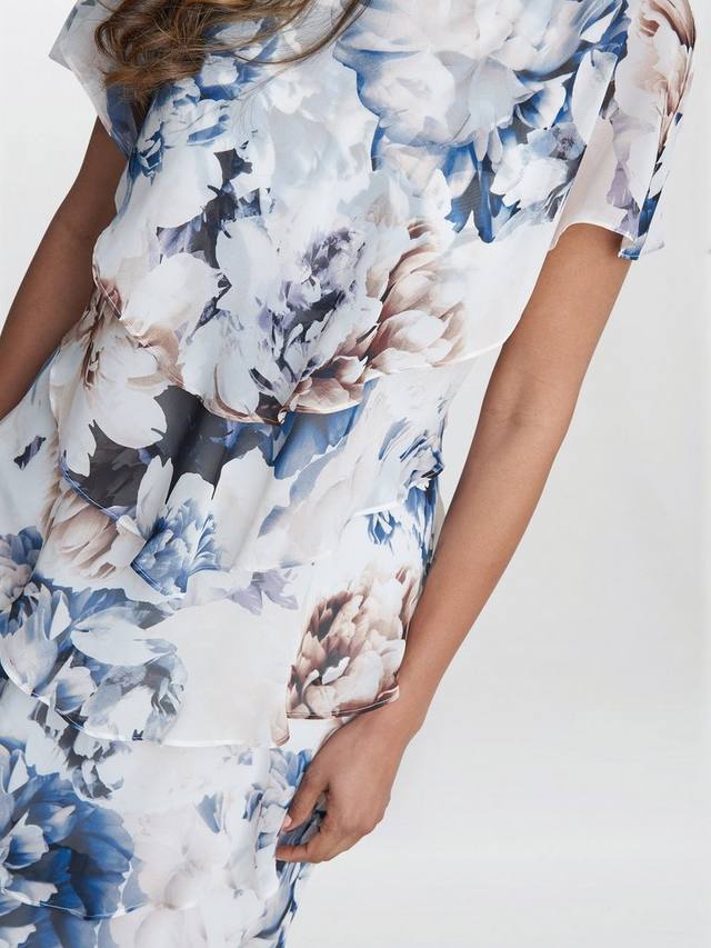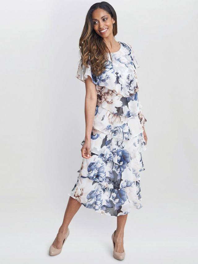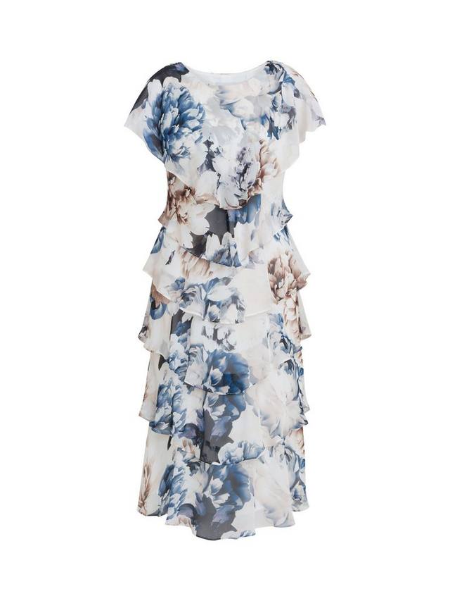 Это многоярусное платье Gina Bacconi Jocelyn отличается нежным и женственным дизайном с цветочным принтом, отделанным тонкой металлической нитью. Платье имеет лёгкий шифоновый верхний слой, круглый вырез и короткие рукава. Это многоярусное платье подчеркивает фигуру, элегантно и подходит для любого случая. Платье на подкладке, рукава без подкладки.