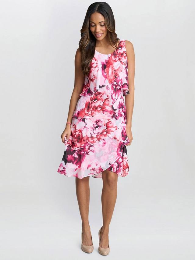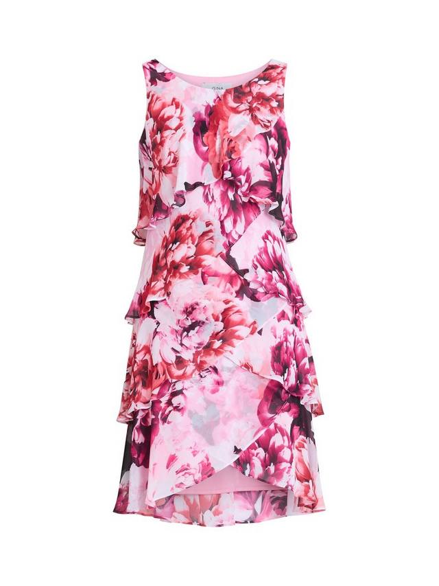 Внесите это многоярусное платье от Gina Bacconi в свой гардероб в этом сезоне. Платье из лёгкого шифона с цветочным принтом красиво движется при ходьбе. Женственное, элегантное и удобное, это идеальный наряд для вечеринки. Платье полностью на подкладке, без рукавов и с круглым вырезом.