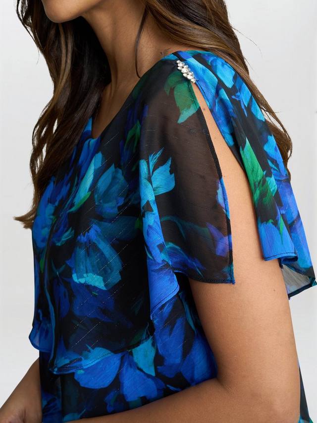 Ярусное платье Matilda — красивое платье с цветочным принтом. Платье имеет лёгкий шифоновый верх, круглый вырез и короткие рукава-накидки с отделкой. Это ярусное платье подчеркнёт вашу фигуру и станет прекрасным дополнением к любому особому случаю.