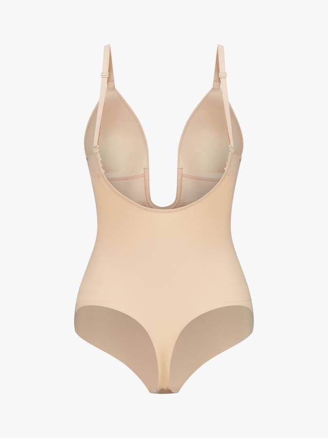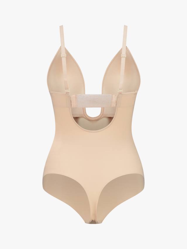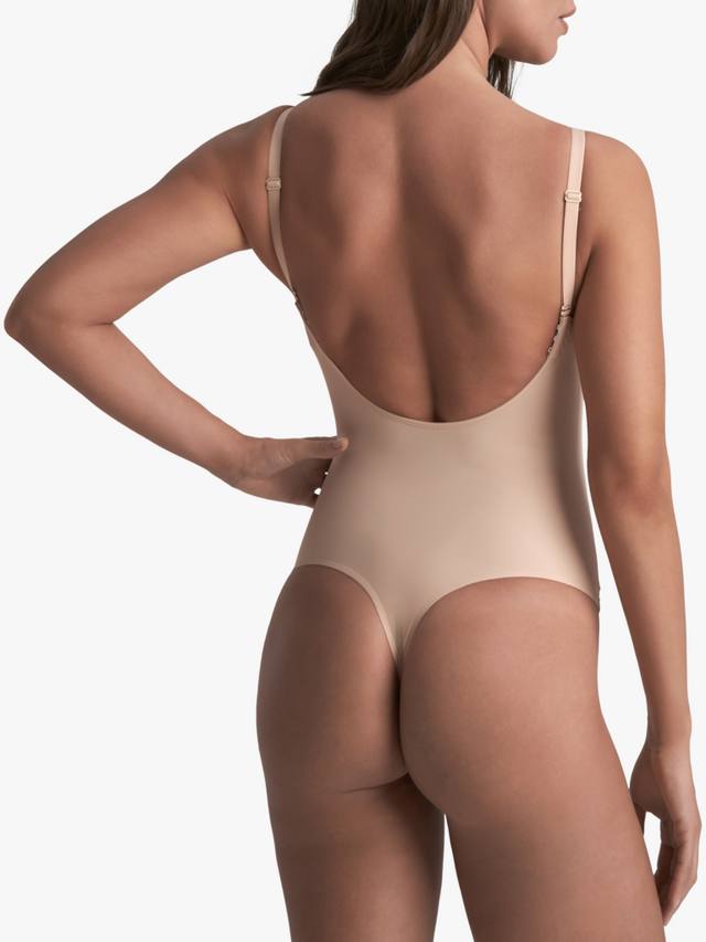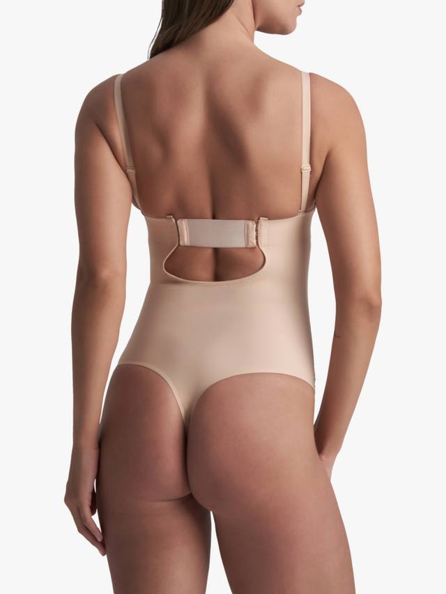 Скульптурирующий боди-слип с глубоким вырезом и стрингами Bye Bra, Beige