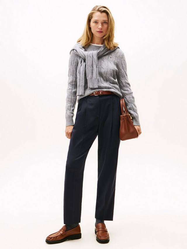 Этот свитер средней плотности с круглым вырезом от Tommy Hilfiger, созданный из чистой шерсти, имеет красивую текстуру для тактильных ощущений.