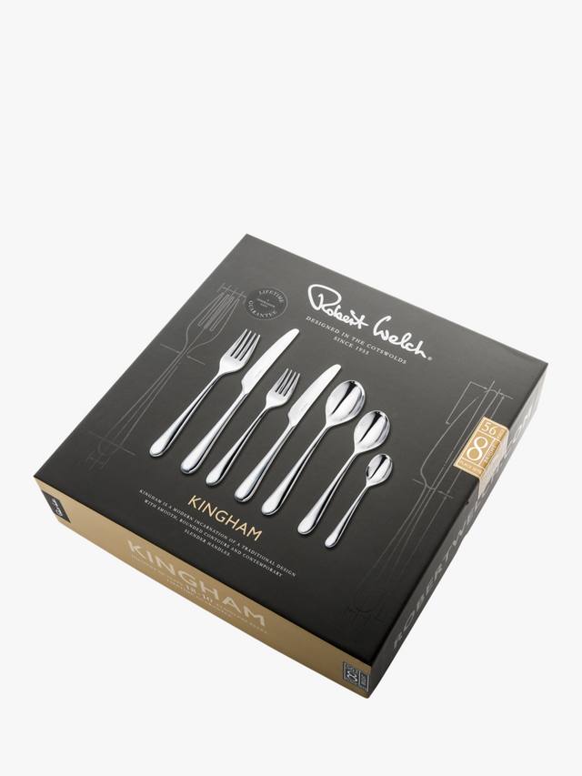 Kingham — обновлённая версия традиционного дизайна. Он отличается чистым и элегантным профилем с плавными округлыми контурами и современными тонкими ручками. Ложки и вилки изготовлены из высококачественной нержавеющей стали 18/10. Ножи — из специально закалённой нержавеющей стали.