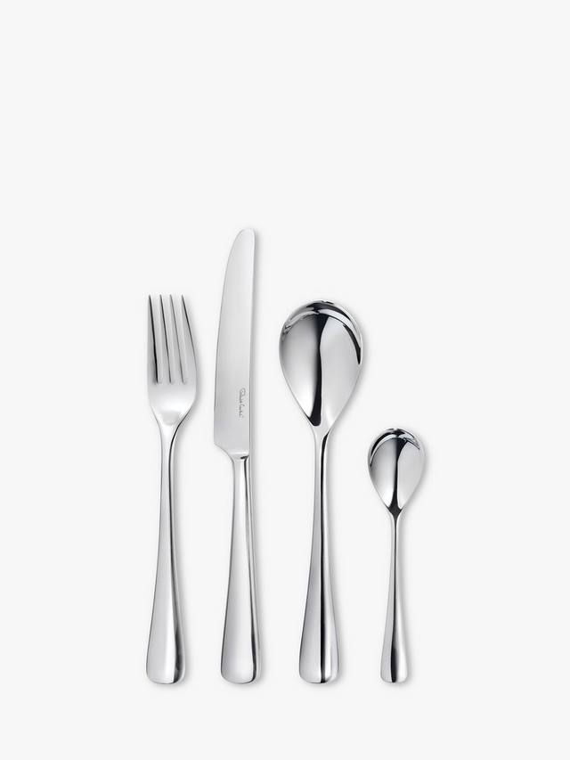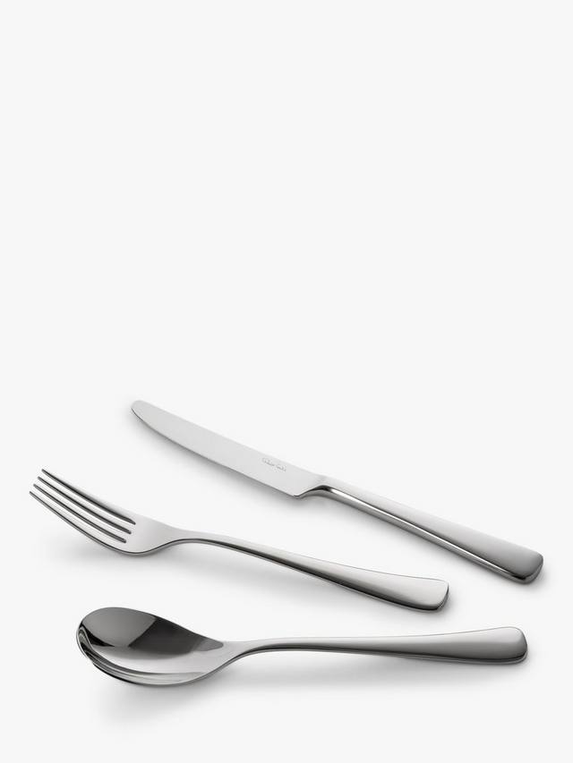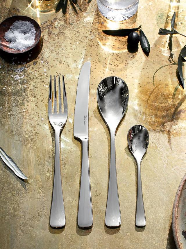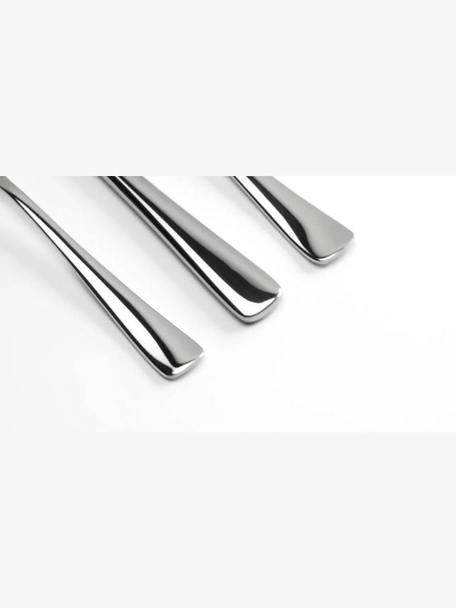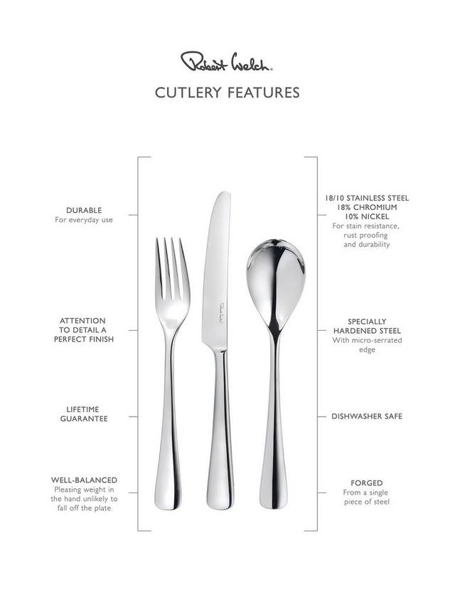 Этот элегантный и неподвластный времени набор из 24 столовых приборов, вдохновлённый очертаниями близлежащих холмов города Вустершир, где он вырос, разработан Робертом Уэлчем. Изделия плавно расширяются к изогнутому основанию. Ручки прочные и удобно лежат в руке.