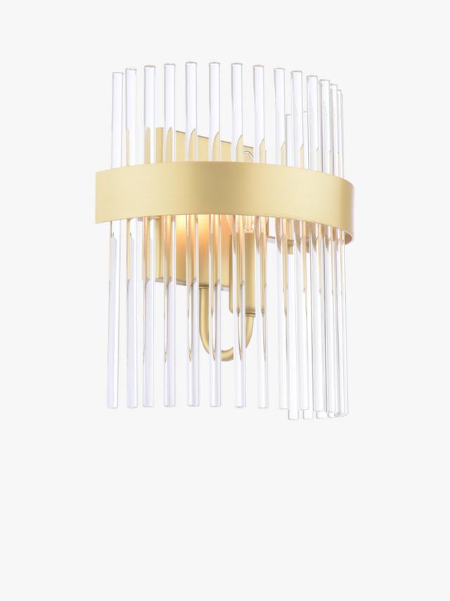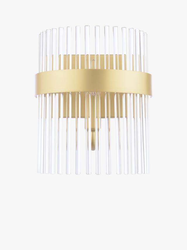 Настенный светильник Alexa, состоящий из тонких стеклянных стержней, закрепленных стальной лентой, выглядит эффектно и в то же время изящно. Этот дизайн рассеивает свет по всему помещению, а декоративный и выразительный внешний вид Alexa легко стилизовать. Изысканное сочетание классики и современности.