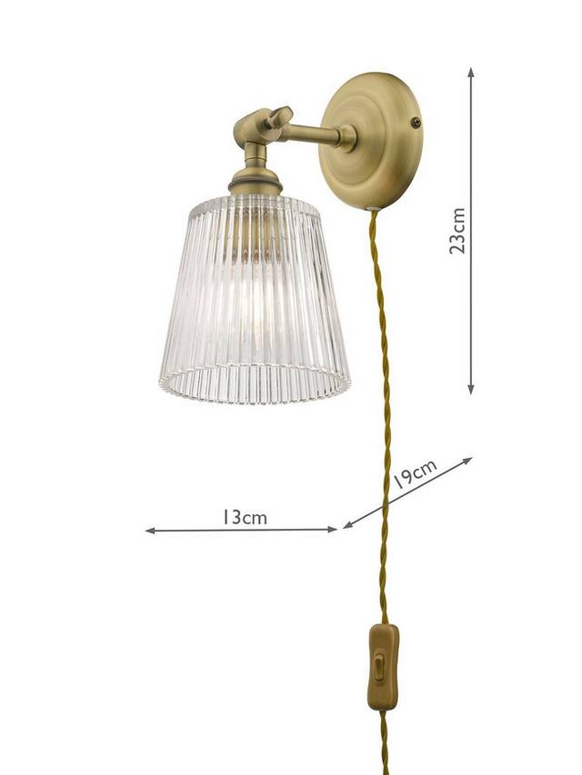 Настенный светильник Callaghan от Laura Ashley оснащен рифленым абажуром из цельного стекла. Этот настенный светильник не требует подключения к электросети и идеально подходит для быстрого и удобного решения. Создайте мягкий индустриальный стиль, например, на фоне необработанной кирпичной кладки, освещая стену светом и подчеркивая любую текстуру. Благодаря витому кабелю в золотистой оплетке и удобному встроенному выключателю этот светильник станет отличной альтернативой прикроватной лампе или настольному светильнику. Лампочка не входит в комплект.