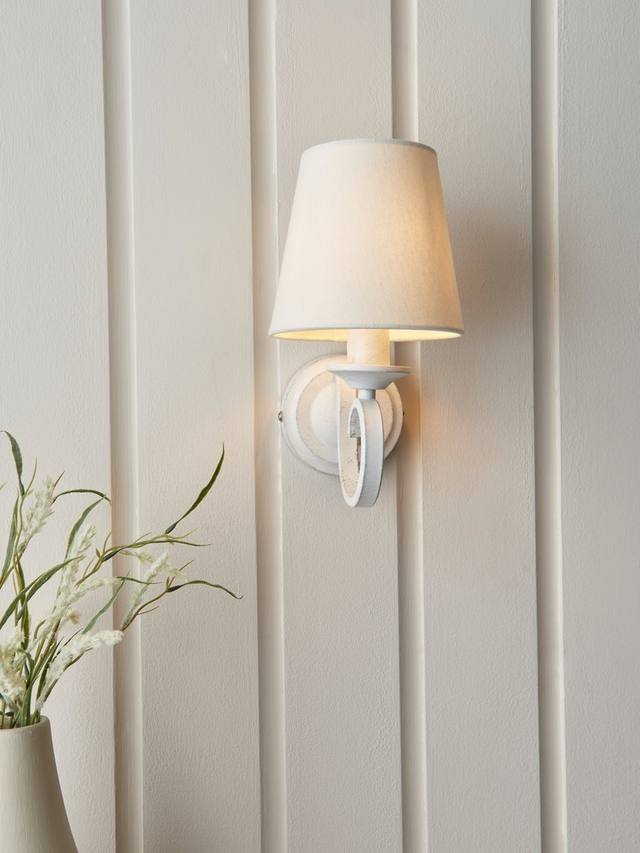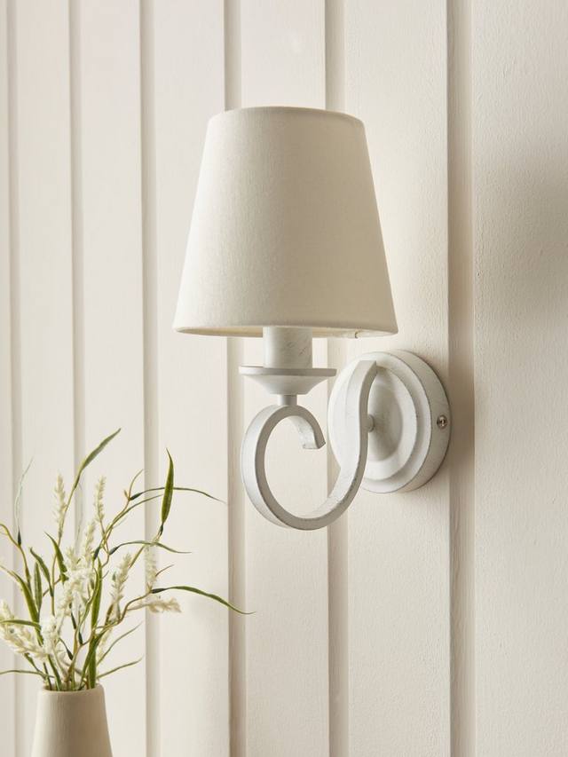 Мы придали этому традиционному настенному светильнику более современный вид с помощью матовой, грубо натертой поверхности. В комплект входит компактный абажур из искусственного льна для смягчения света.
