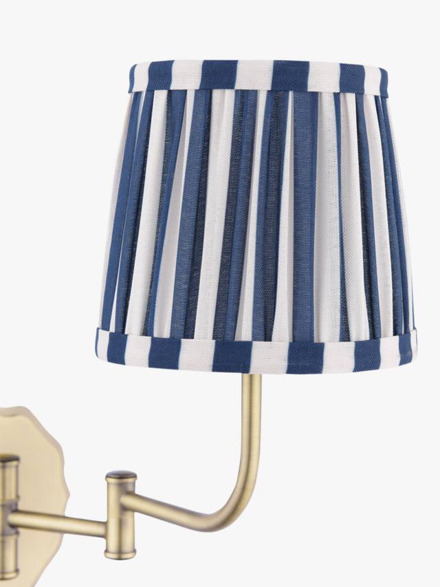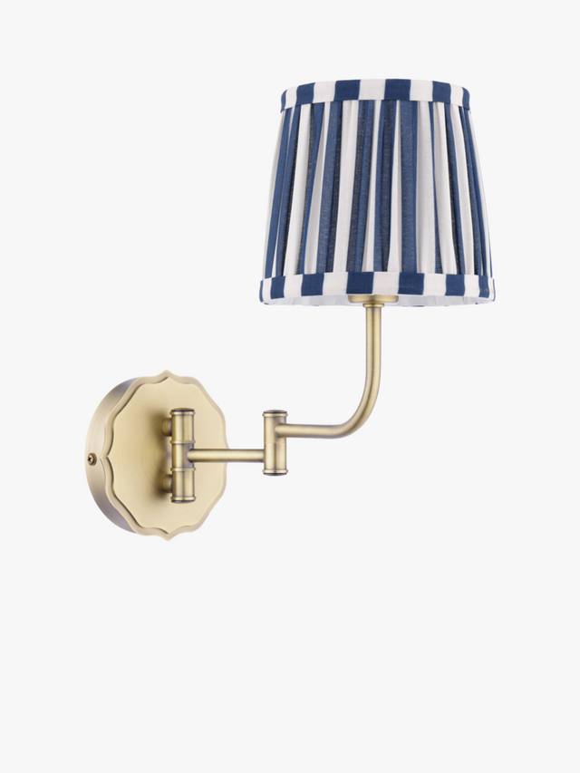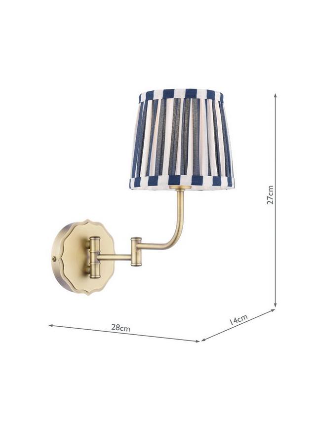 Элегантный и неподвластный времени настенный светильник Laura Ashley Denwick с двухцветным абажуром в тёмно-синюю и кремовую полоску создаёт классический, но в то же время современный образ. Основание и детали из состаренной латуни придают этому настенному светильнику лёгкий винтажный шарм, который украсит любую комнату.