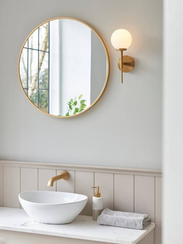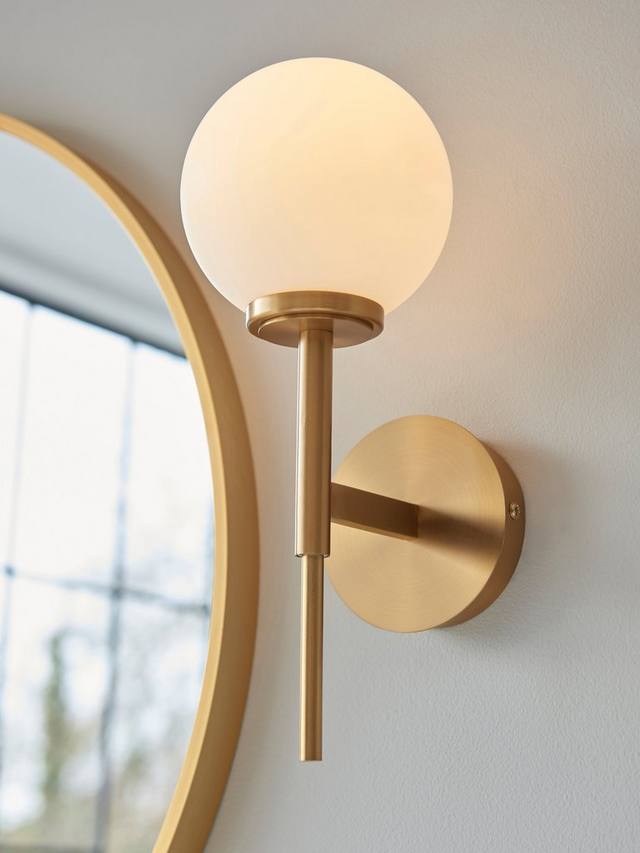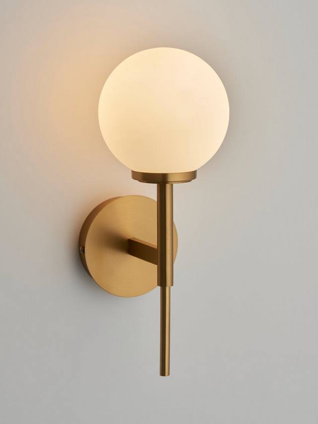 Мы сохранили элегантный и минималистичный дизайн этого настенного светильника, но это не помешает ему создать эффектный акцент в вашем интерьере. Его матовый стеклянный шар дополняет тёплый тон металлического каркаса, а при включении он создаёт рассеянное свечение. Вам понадобится одна светодиодная лампочка.