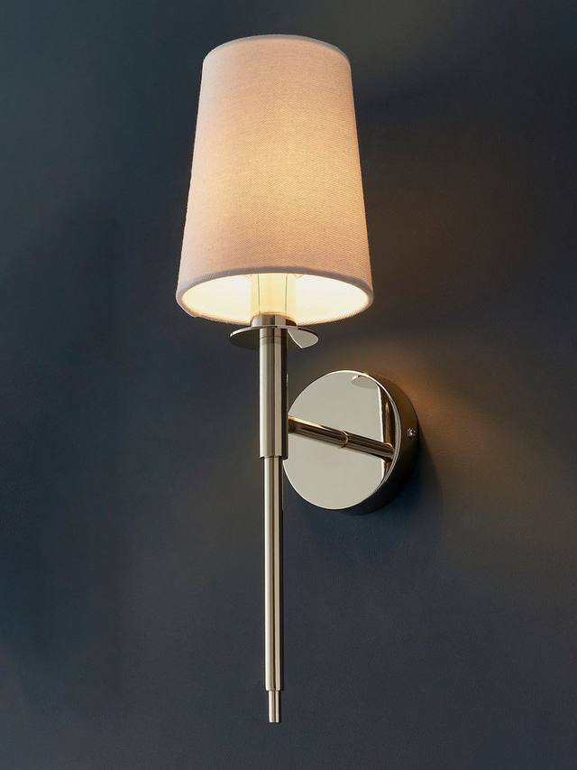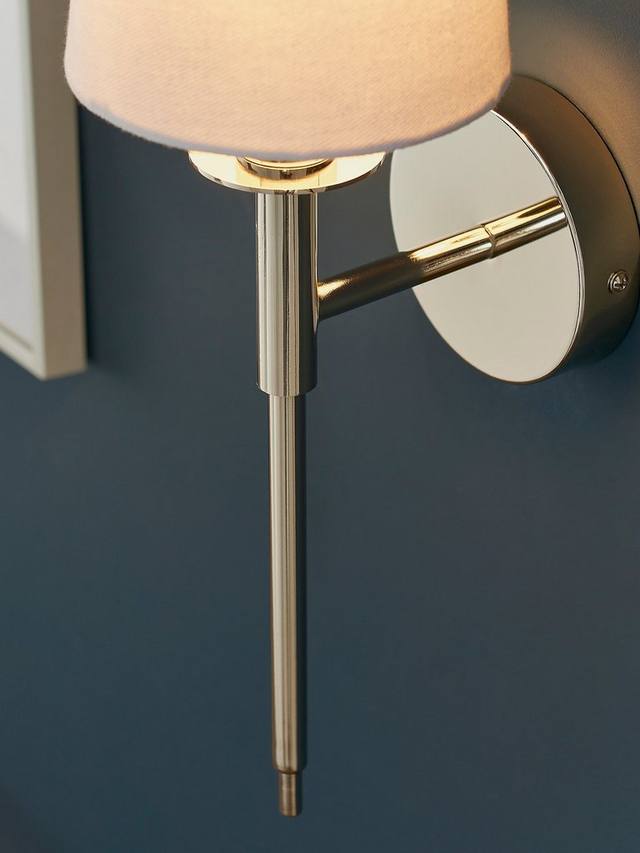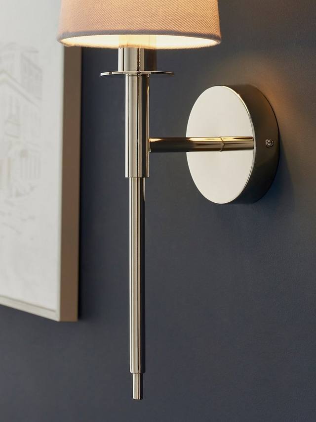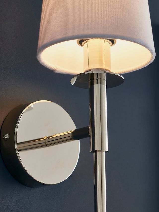 Этот современный и элегантный настенный светильник с удлиненным корпусом в минималистичном стиле добавит мягкого света в прихожую или гостиную. Никелированный металлический корпус и белый хлопковый абажур — традиционное и вневременное сочетание, подходящее к любому интерьеру.