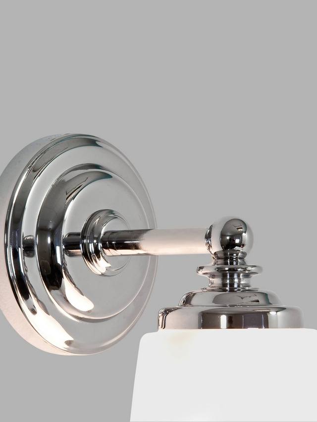 Этот декоративный, но ненавязчивый настенный светильник для ванной комнаты вдохновлён традиционными дизайнерскими решениями. Он изготовлен из матового опалового стекла и стали с полированной хромированной отделкой и добавит элегантности вашей ванной комнате, особенно если установить их попарно по обе стороны от зеркала. Он создает яркое, равномерное и бестеневое освещение, а также обеспечивает успокаивающую атмосферу.