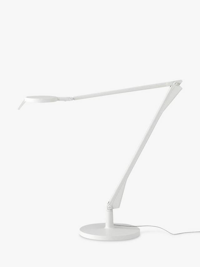 Kartell Aledin Tec — это светодиодный рабочий светильник с плоской головкой, которая излучает прямой световой луч. Он также регулируется; Характеристики, которые делают его полезным в среде домашнего офиса.