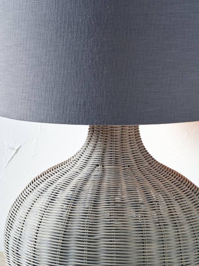 Эта изысканная настольная лампа из плетёного ротанга придаст вашему дому органичный и приятный вид. Благодаря своим потрясающим пропорциям, изогнутой форме и изящному плетению она станет центральным элементом вашей комнаты. Абажур из льна с подкладкой и текстурированной отделкой прекрасно дополняет настольную лампу.