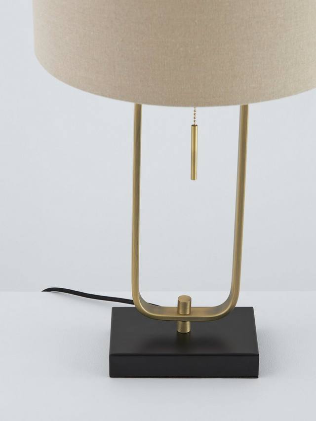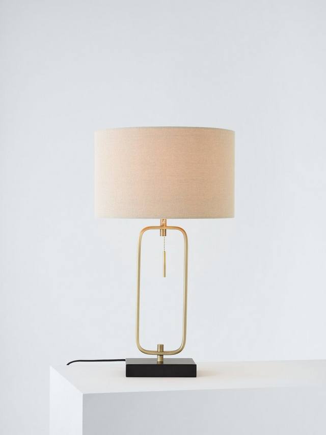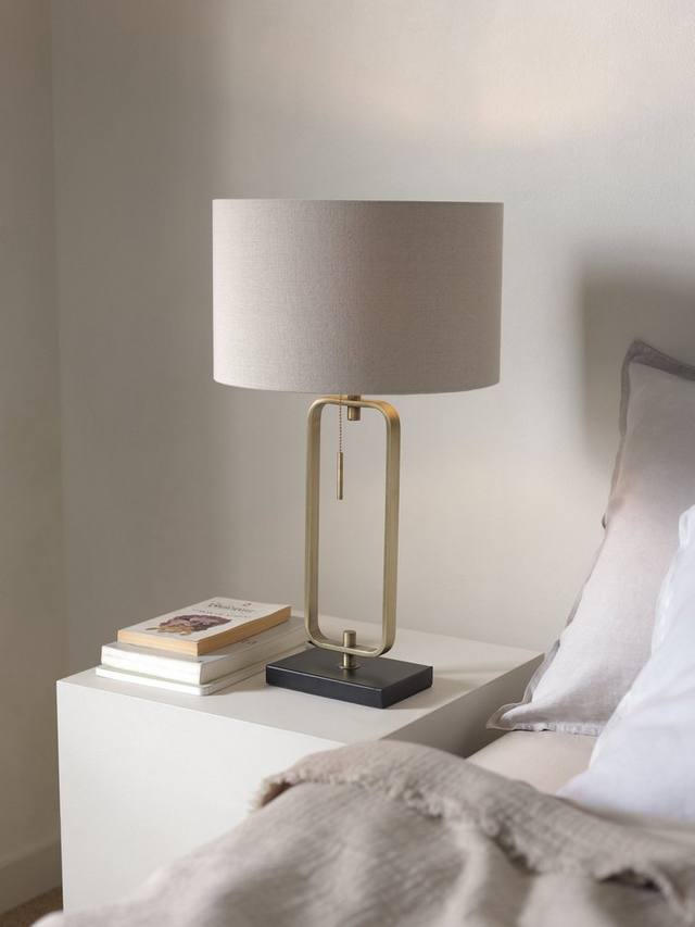 Наша настольная лампа Frame, воплощение современного минимализма, изготовлена из прочной стали и украшена акцентами из матовой латуни. Прочное квадратное основание контрастирует с плавно изогнутой рамой, а абажур из натурального льна создает теплый поток света. Подвесной выключатель обеспечивает простоту использования.