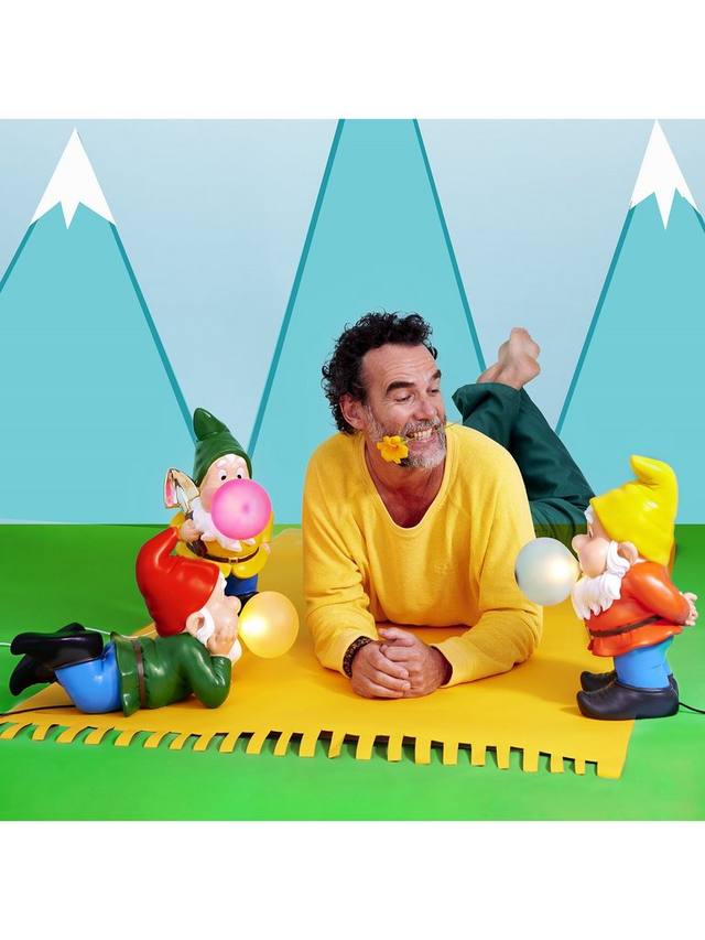 Украсьте свой дом освещением, которое не останется незамеченным. Эта новинка, разработанная Уто Балморалом для Seletti, изображает огромного гнома, выдувающего гигантский пузырь из жевательной резинки. Изготовленные из смолы и окрашенные в яркие цвета, с длинными бородами и черными башмаками, они станут прекрасным дополнением к любому дому. В комплект входит специальная большая светодиодная лампа, которая светится внутри пузыря, создавая приятное свечение. Только для использования в помещении, это забавный способ украсить уютное жилое пространство.