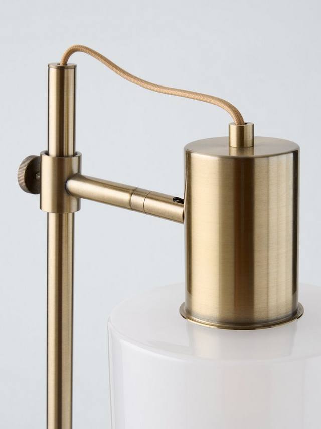 Её стеклянный абажур — это контрастное исследование: глянцевый белый корпус добавляет современный штрих, а матовое покрытие внутри рассеивает мягкое и притягательное свечение. Благодаря регулируемому абажуру настольная лампа Rodos обеспечивает как направленное освещение, так и стильный вид, что делает её универсальным дополнением к вашему домашнему рабочему пространству.