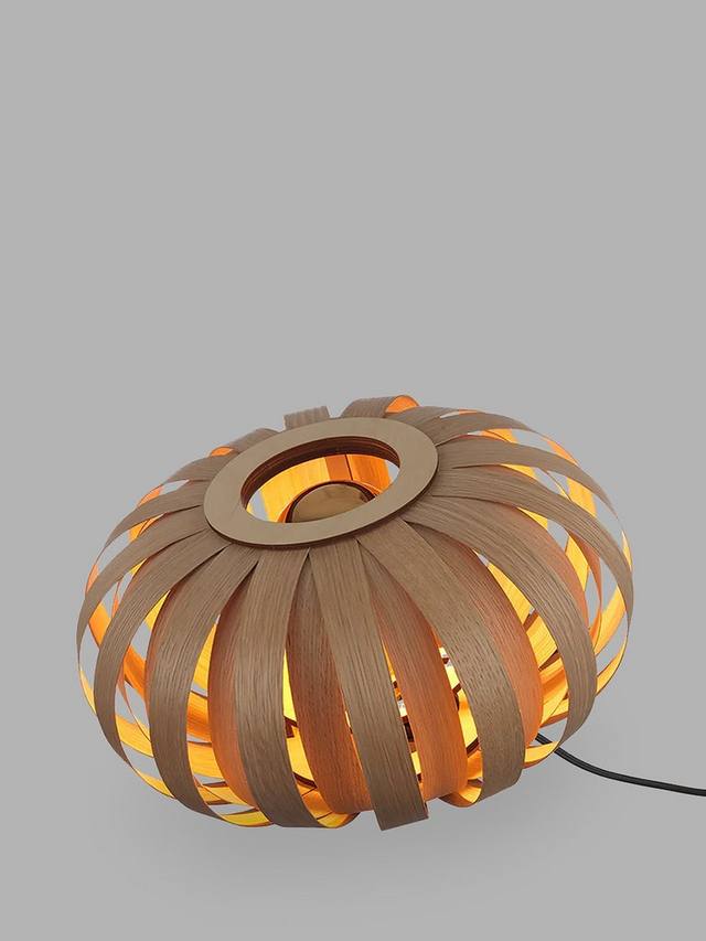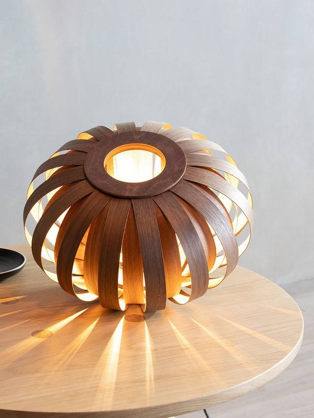 В настольной лампе Urchin 32 четких изгиба сливаются воедино с вырезанными лазером березовыми пластинами, тщательно обработанными, чтобы скрыть лампочку. Благодаря устойчивому дубу или ореху свет проникает сквозь швы, создавая яркие пятна в темноте.
