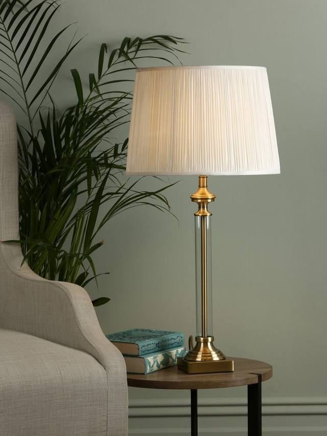 Настольная лампа Winston от Laura Ashley с прозрачным стеклянным цилиндром, обрамляющим тонкую ножку, — стильный акцентный предмет интерьера. Этот элегантный настольный светильник с точеными деталями подсвечника и классической формой, установленный на квадратном фронтоне, украсит вашу любимую комнату. В комплект входит абажур Laura Ashley из плиссированного шёлка в стиле ампир длиной 30 см, выполненный из серебристого хромированного абажура, и кремового латунного абажура. Завершено с прозрачным и золотистым гибким кабелем соответственно.