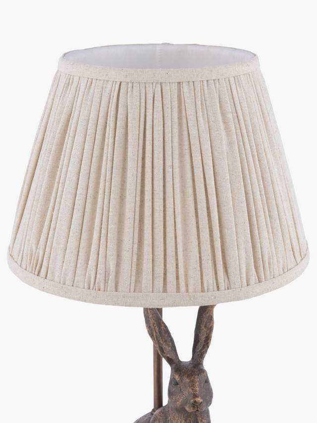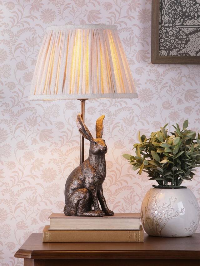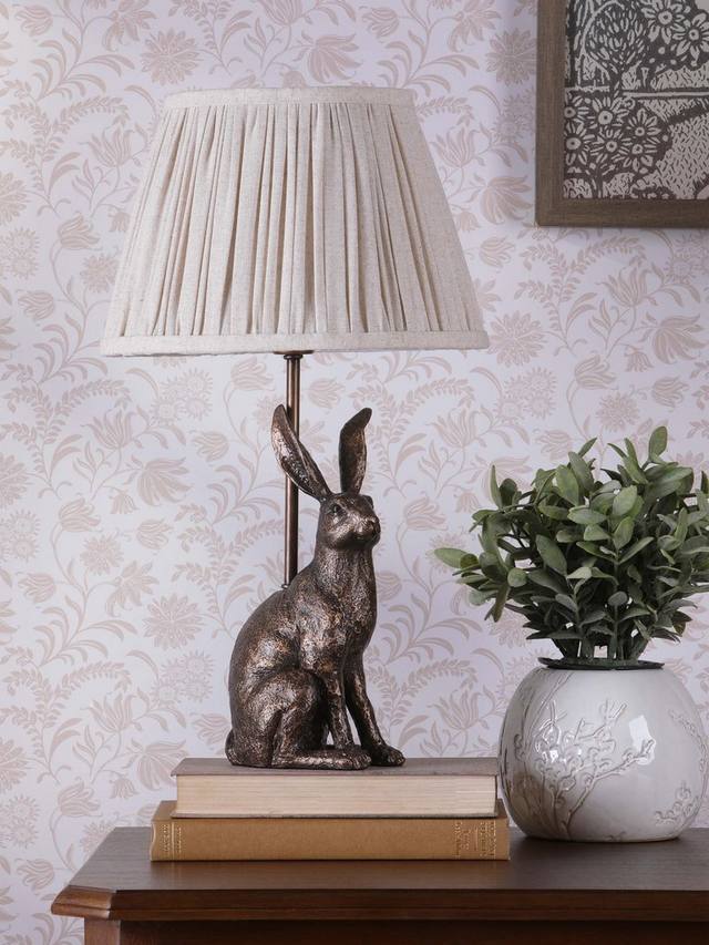 Поставьте его на приставной столик или консоль, чтобы создать уютный источник рассеянного света. Благодаря своей простоте и изысканности эта настольная лампа станет изысканным акцентом как для комнат с традиционным, так и с современным декором. Пусть она создаст теплое, приятное сияние в вашей гостиной. Заяц поставляется с натуральным льняным конусообразным абажуром.