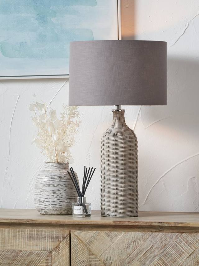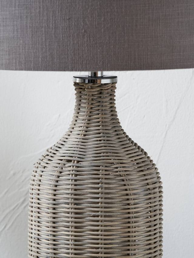 Эта изысканная настольная лампа из плетёного ротанга придаст вашему дому органичный и приятный вид. Благодаря выразительным пропорциям, высокой бутылкообразной форме и изящному плетению эта лампа станет центральным элементом вашей комнаты. Абажур из льна с подкладкой и текстурированной отделкой прекрасно дополняет настольную лампу.