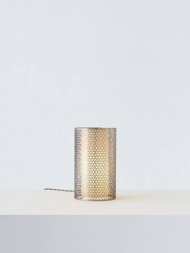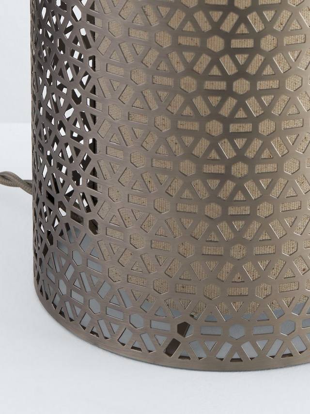 Насладитесь мягким, тёплым светом нашей настольной лампы Meena с красивым металлическим абажуром, вырезанным лазером. При включении свет проникает сквозь сетку, создавая эффект притягивающего взгляд и одновременно рассеянного света. Внутренний тканевый абажур усиливает естественное свечение лампы. Доступен в различных металлических отделках и легко вписывается в интерьер вашего дома.