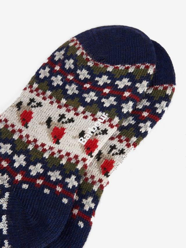 Праздничная интерпретация узора фэр-айл от Barbour с мотивами малиновки. Эти вязаные носки содержат шерсть для создания роскошного эффекта.