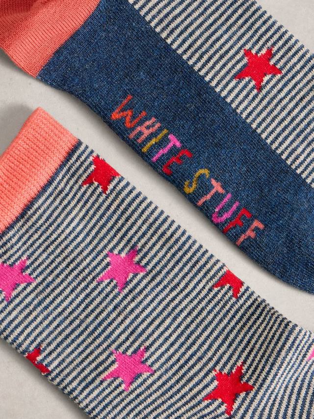 Эта пара носков, созданная для комфорта и повседневной носки, украшена звездно-полосатым узором, который добавляет индивидуальности, а органический хлопок сохраняет ощущение свежести ног в течение всего дня.