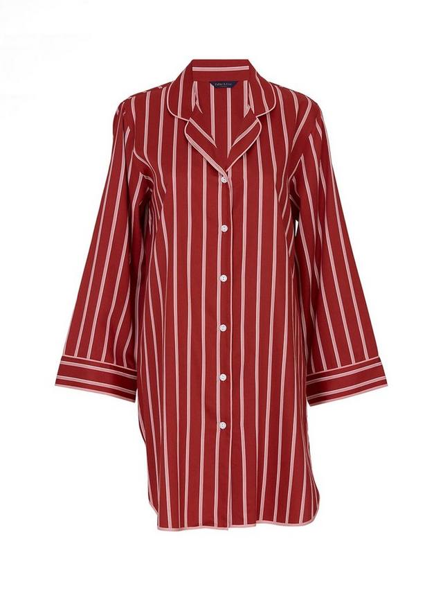 Полосатая ночная рубашка Fable & Eve сочетает в себе мягкий комфорт модала и хлопка с элегантным воротником и удобной застежкой на пуговицы. Короткая длина обеспечивает прохладу во время сна, а длинные рукава согревают без лишних хлопот — идеально для спокойных вечеров и мирного утра.