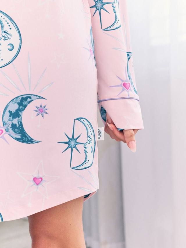 Окунитесь в небесную сладость с ночной рубашкой Astral Hearts, созданной для мечтательных ночей и звездного отдыха. Этот игривый принт, украшенный мерцающими звездами, полумесяцами и нежными сердечками, окутает вас космическим очарованием. Изготовлена из мягкого переработанного трикотажа, имеет свободный воротник-стойку, длинные рукава, контрастную окантовку и слегка изогнутый подол для удобства движений и комфорта на всю ночь. Идеально подходит для спокойных вечеров, ленивых утр и всего, что между ними.