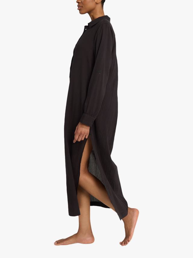 Рубашка из 100% хлопка в пол. Украшена фирменной отделкой Nudea, перламутровыми пуговицами и высокими боковыми разрезами до бедра.