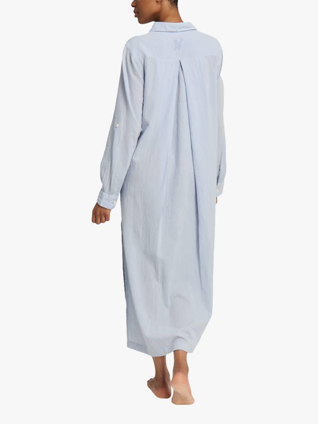 Рубашка из 100% хлопка в пол. Украшена фирменной отделкой Nudea, перламутровыми пуговицами и высокими боковыми разрезами до бедра.