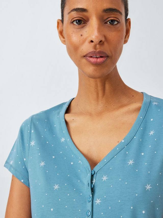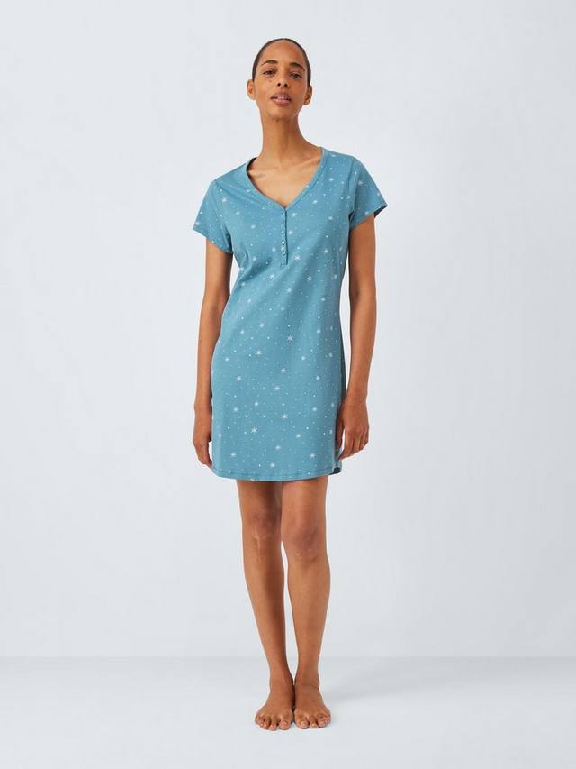 Эта классическая ночная рубашка с ослепительным звездным принтом изготовлена из чистого хлопкового трикотажа.
