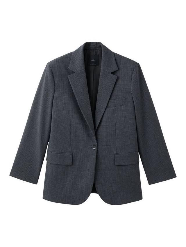 Универсальный однобортный пиджак с мелким клетчатым узором.