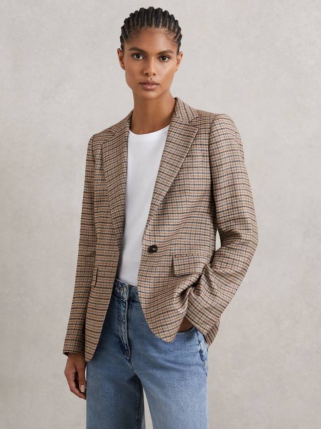 Однобортный клетчатый блейзер от Reiss. Продуманное сочетание волокон обеспечивает комфорт и четкую структуру, а продуманный крой придаст четкую структуру любым вашим планам.