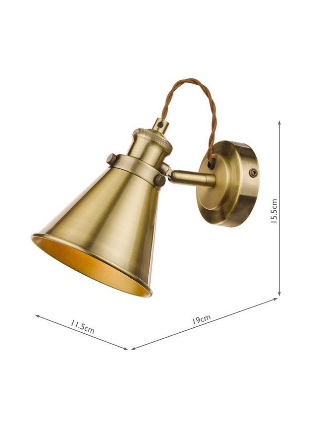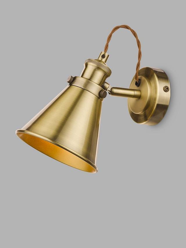 Настенный светильник Rufus от Laura Ashley с отделкой под старинную латунь будет великолепно смотреться в любом интерьере. Rufus идеально подходит для направленного освещения, акцентирующего свет на каком-либо предмете или освещающего небольшую зону. Это качественный настенный светильник с регулируемым абажуром в форме конуса из гнутого металла с аккуратным закругленным краем, установленный на круглой настенной пластине. В сочетании с витым светло-коричневым плетеным шнуром из ткани он создаёт винтажный образ. Лампочка не входит в комплект.