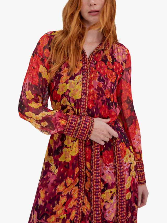 Оливковое платье – это роскошный гобелен осенних красок. Это платье миди украшено пышным цветочным принтом, подчеркнутым золотистыми крапинками, и имеет высокий вырез. Длинные рукава и жатый шифон создают одновременно комфортный и элегантный силуэт. Платье дополнено поясом, подчеркивающим талию, и станет незаменимым предметом гардероба как для сезонных праздников, так и для изысканного повседневного образа.
