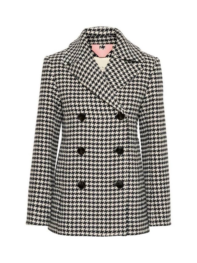 Пальто Lekia — классический образец верхней одежды со стильным рисунком гусиная лапка. Двубортное пальто с отложным воротником и приталенным кроем застегивается на пуговицы. Длинные рукава с прямым краем, длина до бедер.