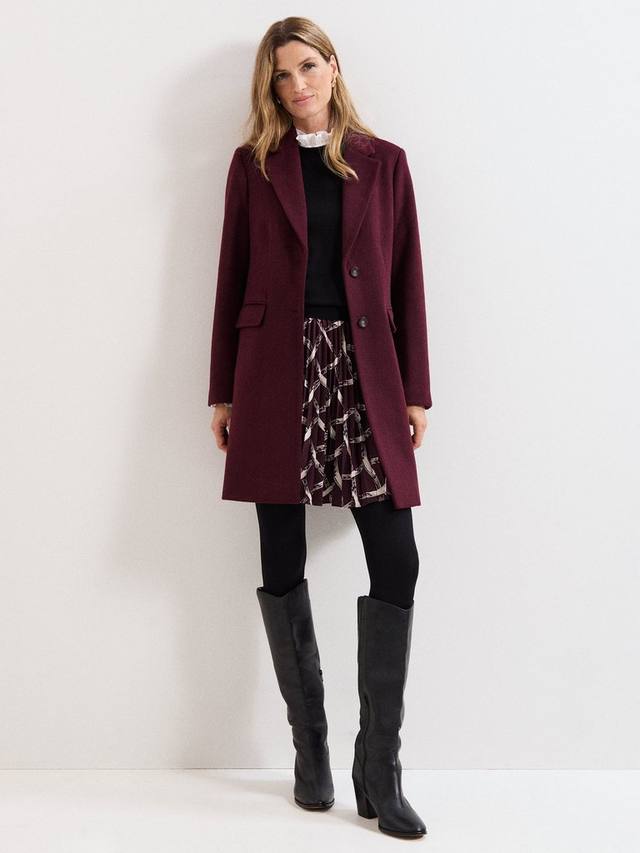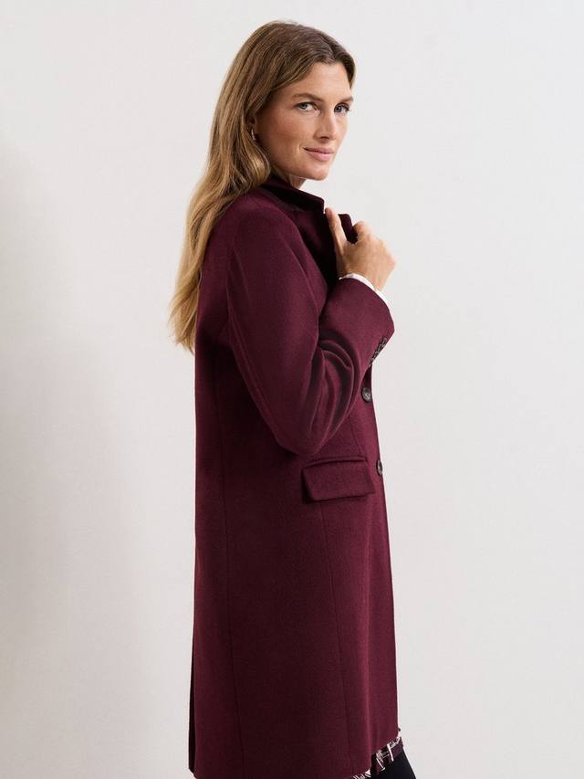 Это эффектное пальто из мягкой шерстяной смеси имеет шикарную застежку на пуговицы в черепаховом панцире, пуговицы на манжетах, передние карманы и шлицу сзади, что еще больше подчеркивает этот стиль.