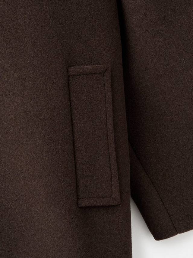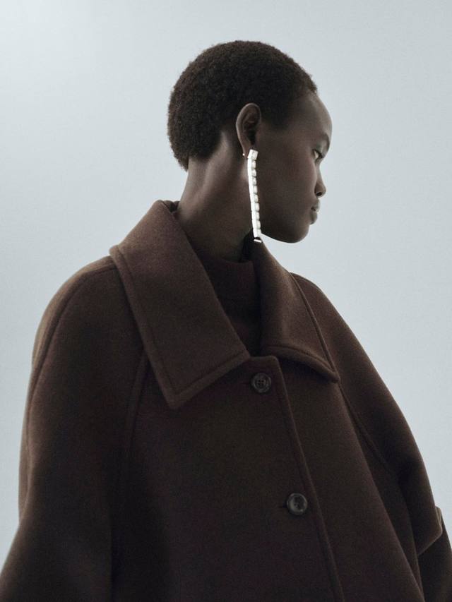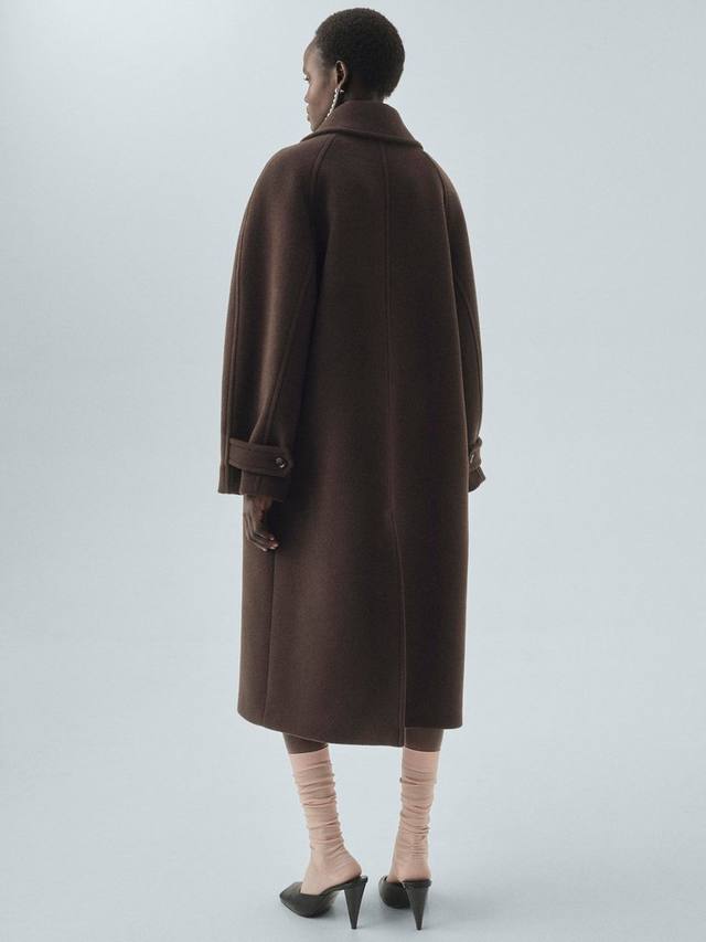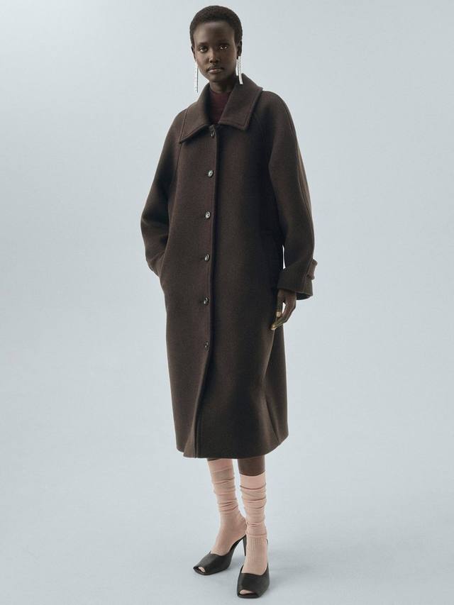 Наденьте это длинное пальто из теплой шерстяной ткани для напряженных дней. Аккуратный воротник и застежка на пуговицы помогут вам чувствовать себя собранным и готовым к любым ситуациям, будь то работа или прогулка.