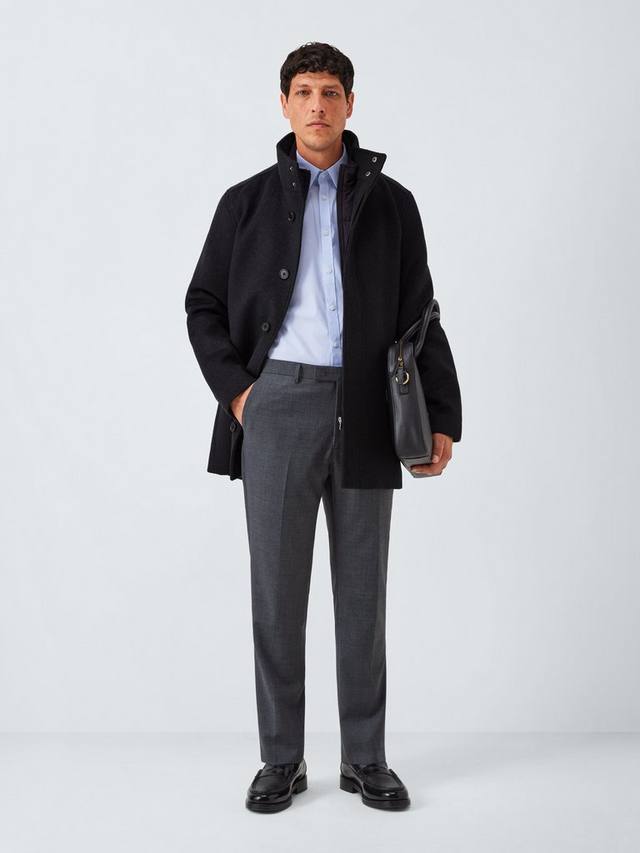 Это полупальто, сотканное из смесовой шерсти, дополнено современной съёмной стёганой вставкой для дополнительного тепла. Оно застёгивается на пуговицы, имеет потайную планку и одну шлицу сзади. Внутри пальто полностью на подкладке, а воротник-труба защищает от холода. Отлично подходит для более торжественных случаев.