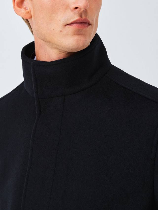Это полупальто, сотканное из смесовой шерсти, дополнено современной съёмной стёганой вставкой для дополнительного тепла. Оно застёгивается на пуговицы, имеет потайную планку и одну шлицу сзади. Внутри пальто полностью на подкладке, а воротник-труба защищает от холода. Отлично подходит для более торжественных случаев.